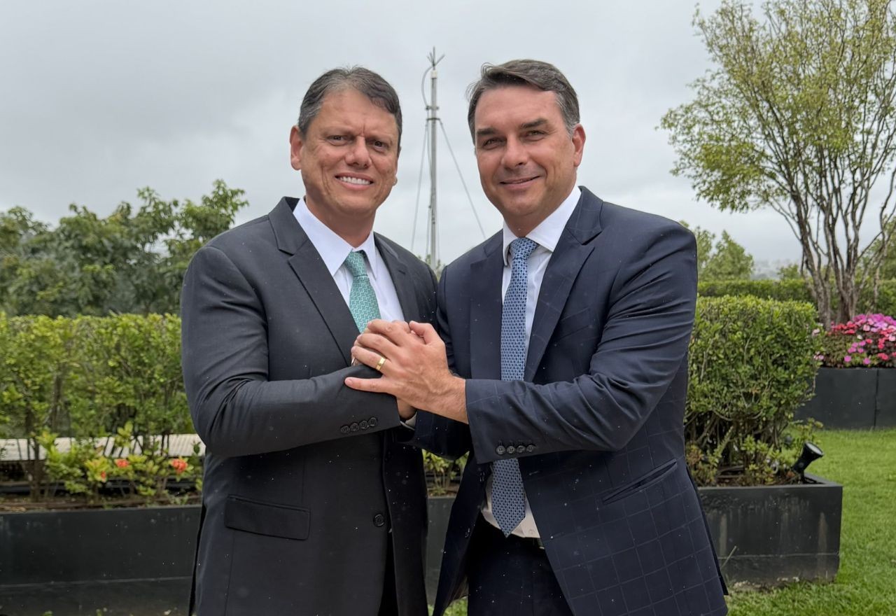 O governador de São Paulo, Tarcísio de Freitas (Republicanos), se reuniu na manhã desta sexta-feira (27), no Palácio dos Bandeirantes, com o senador Flávio Bolsonaro