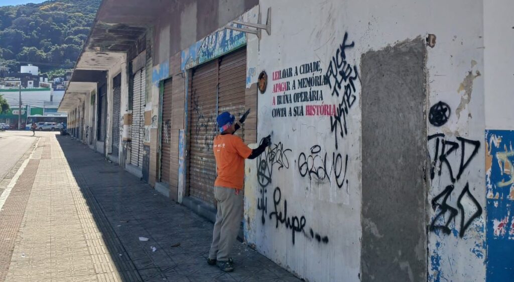 A Aliança por Floripa, uma iniciativa da CDL Florianópolis, Associação Empresarial de Florianópolis (Acif) e Conselho de Segurança (Conseg), começou, nesta quarta-feira (15), uma ação de despichação das paredes externas da antiga rodoviária. A ação foi motivada por um pedido feito pela prefeitura da capital.
