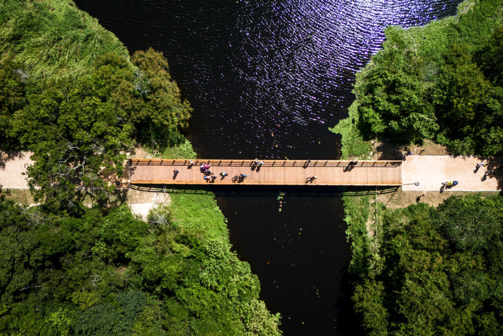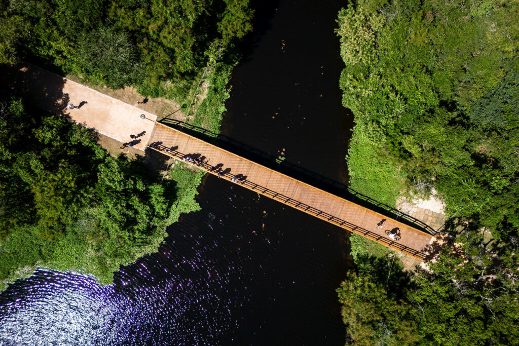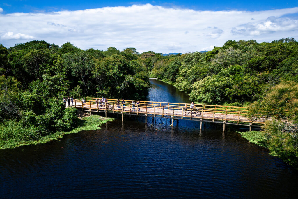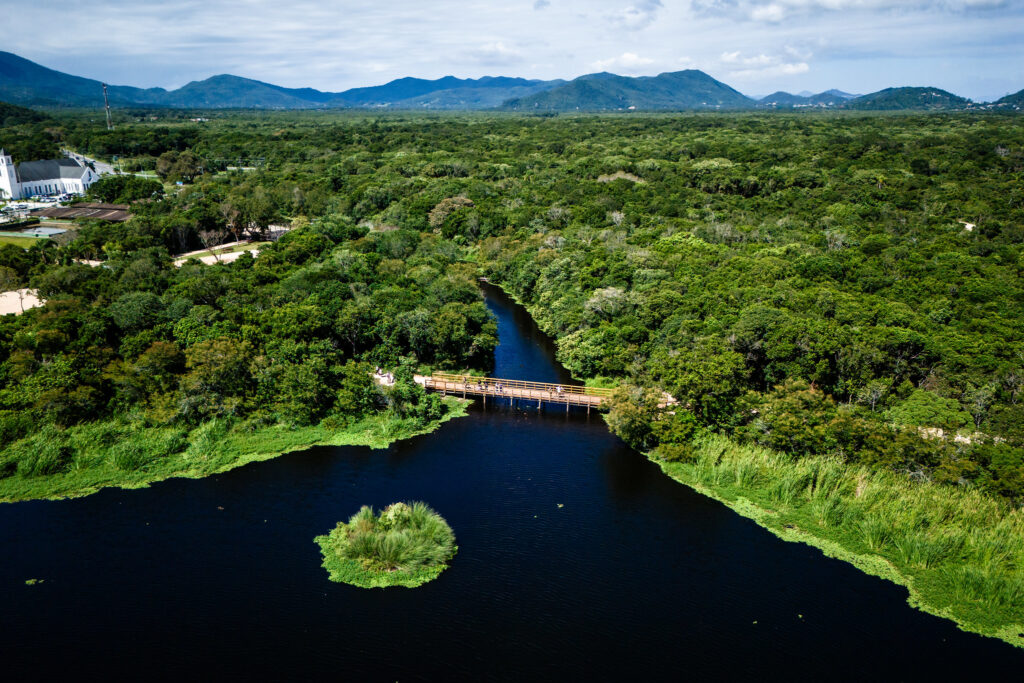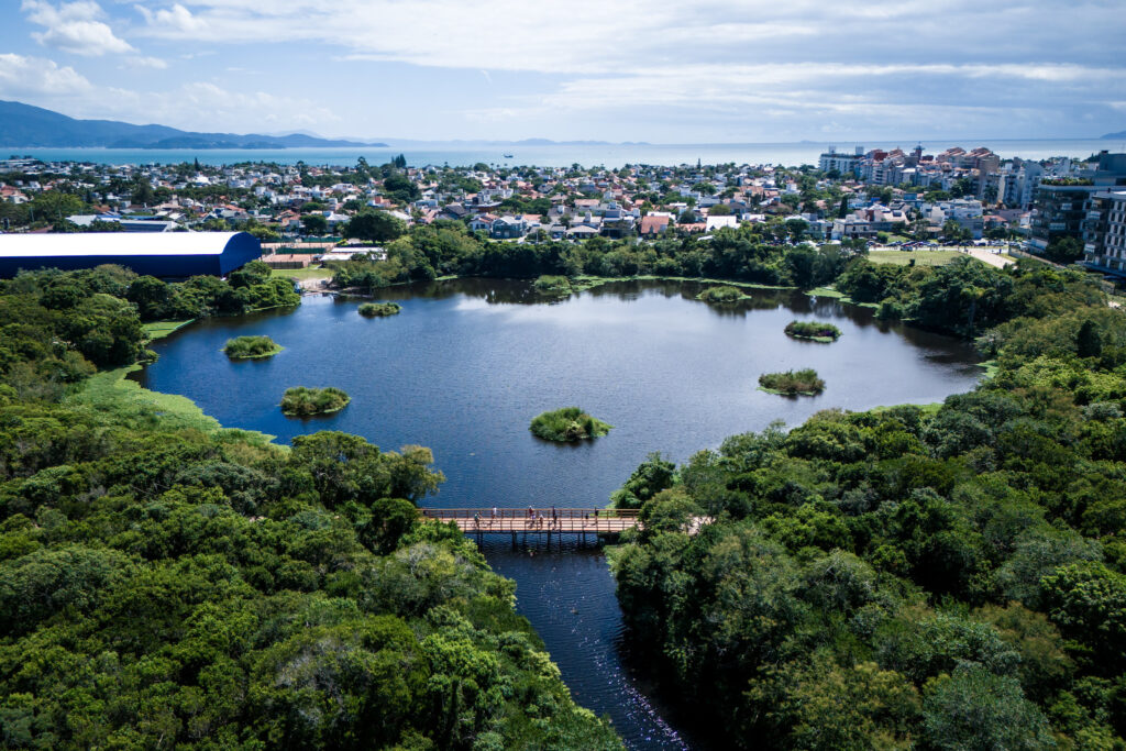 Dentro da programação de aniversário de 353 anos de Florianópolis, a Habitasul e a prefeitura entregaram, nesta segunda-feira (23), o Parque Péricles de Freitas Druck. É uma área de 4,5 quilômetros de passeios internos e ciclovias, locais de contemplação, um lago e mais de 1,5 mil árvores de 64 espécies nativas plantadas recentemente no coração de Jurerê Internacional.