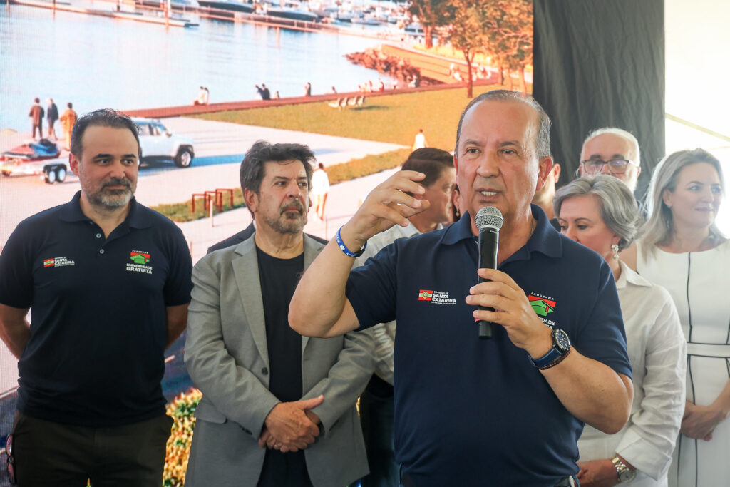 Governador Jorginho Mello discursa na cerimôna de entrega do alvará de construção da marina