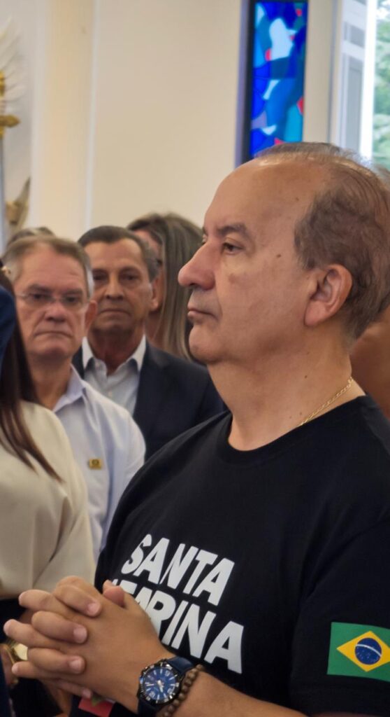 O fato em foto: Jorginho Mello e Júlio Garcia na missa em Içara