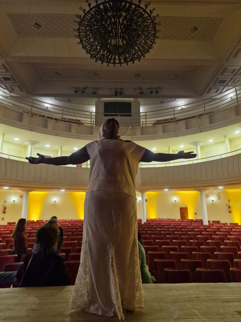 Ao ser questionada sobre como imagina sua trajetória sendo levada para a avenida, Solange recorre à linguagem que atravessa sua vida: o teatro.