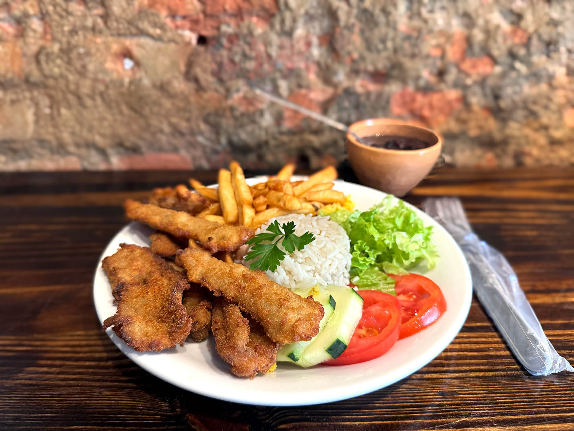 Conheço esse pequeno restaurante desde a abertura e acompanhei suas mudanças de proprietários. O meu xodó é o prato com filezinho de peixe espada à milanesa (R$ 24,90 – foto) com arroz, feijão, salada e fritas. Com molho de camarão, ele sai por R$ 32,90. Também serve frango grelhado, à milanesa e à parmegiana (R$ 24,90); alcatra à milanesa, acebolada, acavalo e à parmegiana (R$ 28,90); estrogonofe de frango (R$ 25); bisteca de porco (R$ 26,90), entre outros. O cozinheiro é brasileiro, mas os proprietários são cubanos, servindo uma opção de prato cubano às sextas.