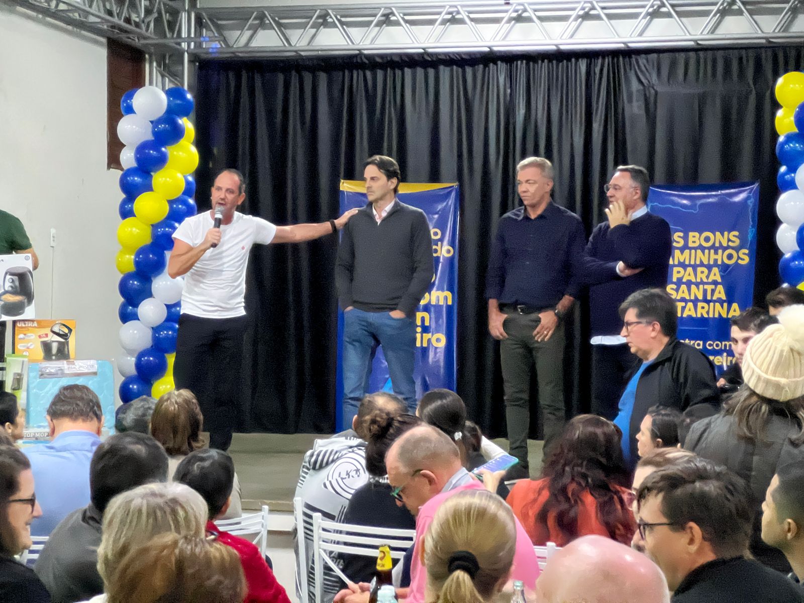 O deputado estadual e pré-candidato à reeleição Laércio Schuster (União) foi o anfitrião de um evento que reuniu cerca de mil pessoas para ouvir os