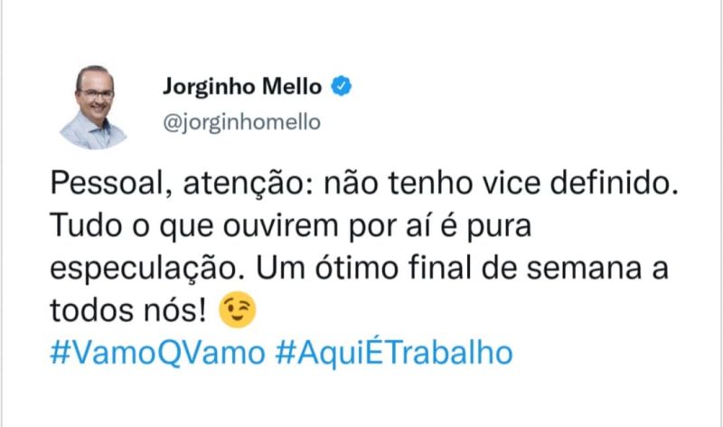 Em pleno final de semana, o senador Jorginho Mello (Pl) mandou avisar que não tem vice definido. Pré-candidato a governador e aspirante a liderar a