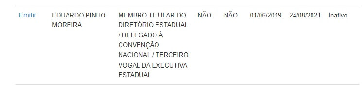O parecer apontou que em consulta à Justiça Eleitoral foi certificado que Pinho Moreira era membro do diretório estadual do Mdb – a legislação federal veda a participação de dirigentes partidários em cargos de direção do sistema financeiro. Segundo o parecer, o emedebista foi notificado para esclarecer a situação e “este referiu estar desatualizada sua situação constante do site da Justiça Eleitoral, comprometendo-se a apresentar certidão que retrate a sua situação atualizada perante partido”. De fato, Pinho Moreira deixou a condição de integrante do diretório no mesmo dia 24 de agosto em que teve a aprovação do Brde para compor a diretoria.