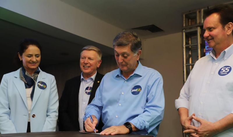 O Psd catarinense mostrou força com a filiação do prefeito de Florianópolis, Topázio Neto (ex-Republicanos), na noite desta quarta-feira. Em uma evento de caráter estadualizado, com nomes pessedistas de diversas regiões, o prefeito florianopolitano teve a ficha assinada pelo presidente nacional Gilberto Kassab, pelo presidente estadual Milton Hobus e pela presidente municipal Marlene Fengler. O evento também enfatizou a aliança do Psd com o União Brasil do pré-candidato a governador Gean Loureiro, que renunciou à prefeitura da Capital no final de março.