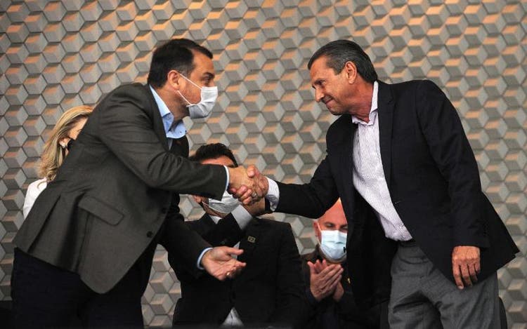 Em 2020, Moisés e Júlio Garcia selaram em Criciúma a aliança que reorganizou a base político do governo estadual. Foto: Caio Marcelo, Divulgação.