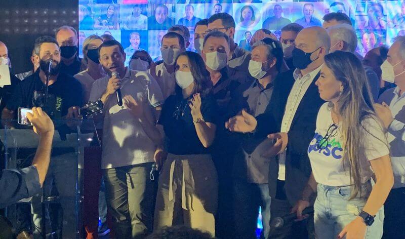 Naquele sábado, mais cedo, Moisés estava em outras fotos. Em Canelinha, na Grande Florianópolis, o governador foi a principal atração de um encontro de lideranças promovido pela deputada estadual Paulinha (ex-Pdt). Foi acompanhado por alguns dos principais nomes do secretariado – Eron Giordani (Casa Civil), Jorge Tasca (Administração), André Motta Ribeiro (Saúde) – e pela primeira-dama Késia Martins da Silva. Estavam lá 40 prefeitos e mais de 100 vereadores que devem estar alinhados à candidatura de Paulinha à reeleição.